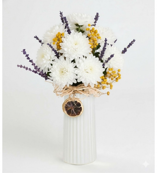 Bej Çizgili Vazoda Kasımpatı Aranjman